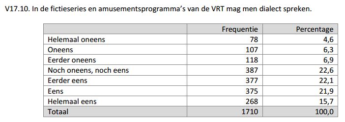 Dat blijkt trouwens ook als we er nog een andere stelling bijnemen, over dialect in VRT-programma’s: