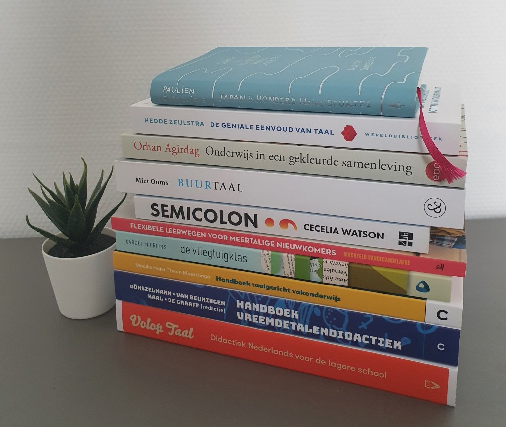 Volop Taal. Didactiek Nederlands voor de lagere school (Mariet Schiepers et al., Owl Press). Een uniek (en uitzonderlijk goed) handboek taaldidactiek voor de basisschool, geschreven door een uitgebreid auteursteam: 14 docenten van lerarenopleidingen over heel Vlaanderen schreven samen met het Centrum voor Taal en Onderwijs (KU Leuven) mee aan Volop Taal. Een bérg aan expertise dus, en dat merk je ook in dit boek, dat aan de hand van zeven heldere didactische principes toont hoe je als leerkracht werk kunt maken van goed en krachtig (taal)onderwijs. Inspirerend, praktisch inzetbaar en vlot leesbaar: zo heb ik m’n vakliteratuur graag!